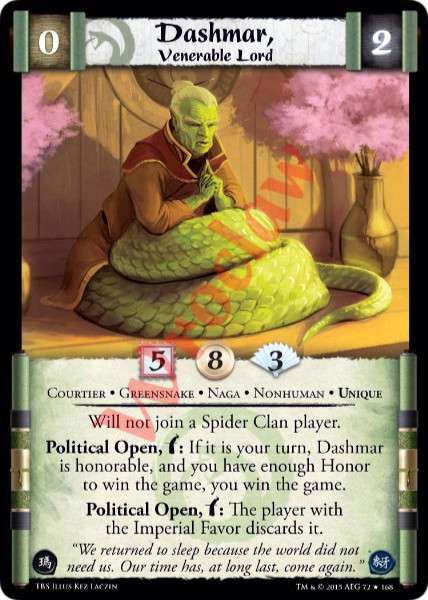 Political Tireless Response: After you discard the Imperial Favor for the action, Lobby for it without bowing (even during battle).