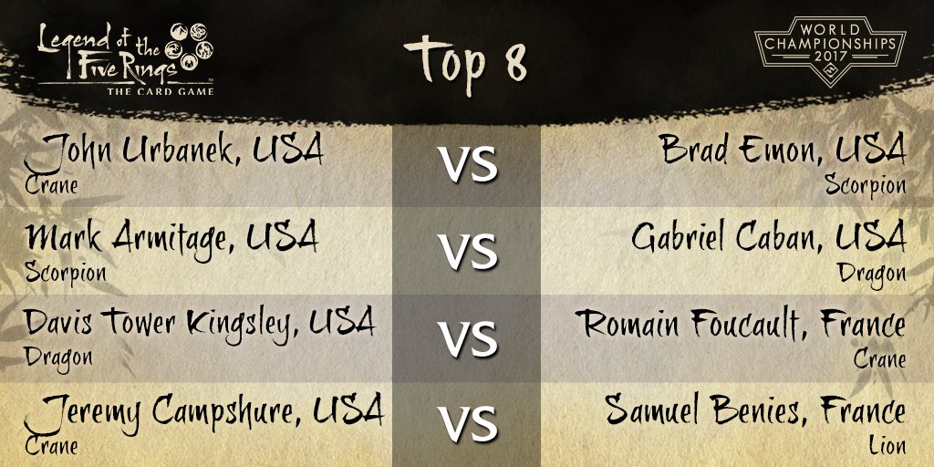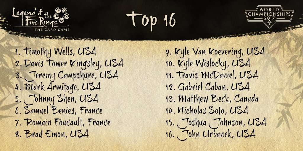 "Overall, the Legend of the Five Rings: The Card Game World Championships were well represented by members of all the Great Clans—with the Unicorn Clan lagging a bit behind."